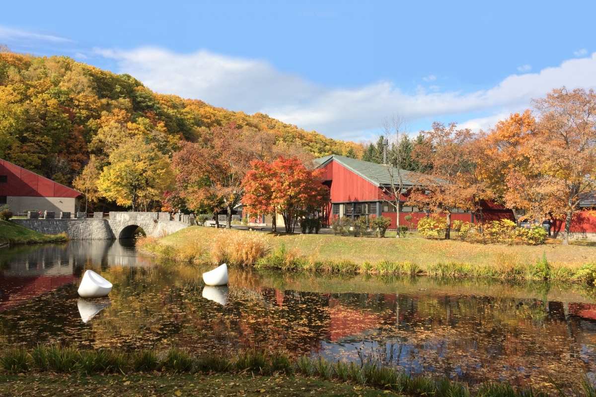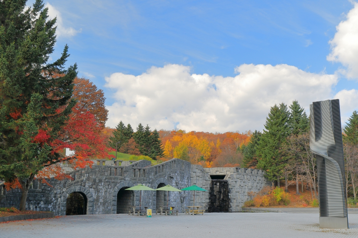 札幌芸術の森に広がる約40haの敷地に点在する“野外美術館”は、アート作品と自然が溶け合う紅葉の名所として知られています。彫刻作品と色づいた木々が織りなす景観は、秋ならではの芸術空間です。
