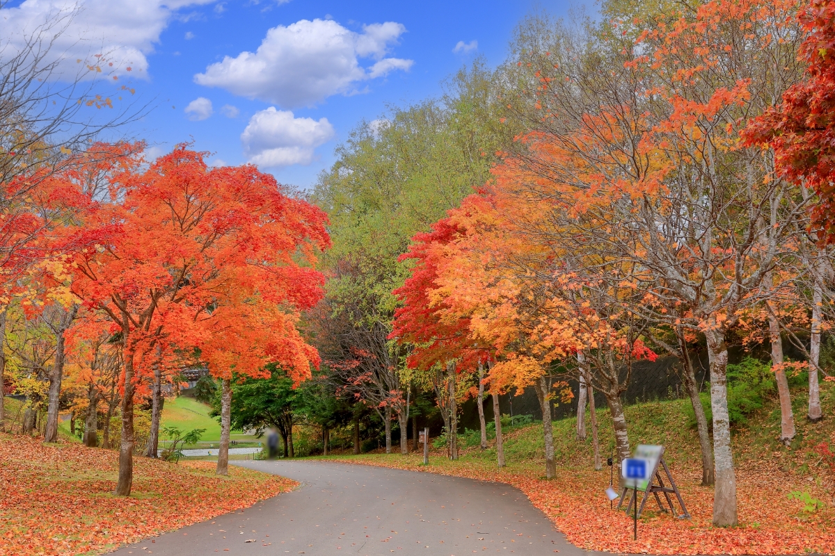 札幌市内最大の国営公園で、秋になると園内が一気に色づきます。