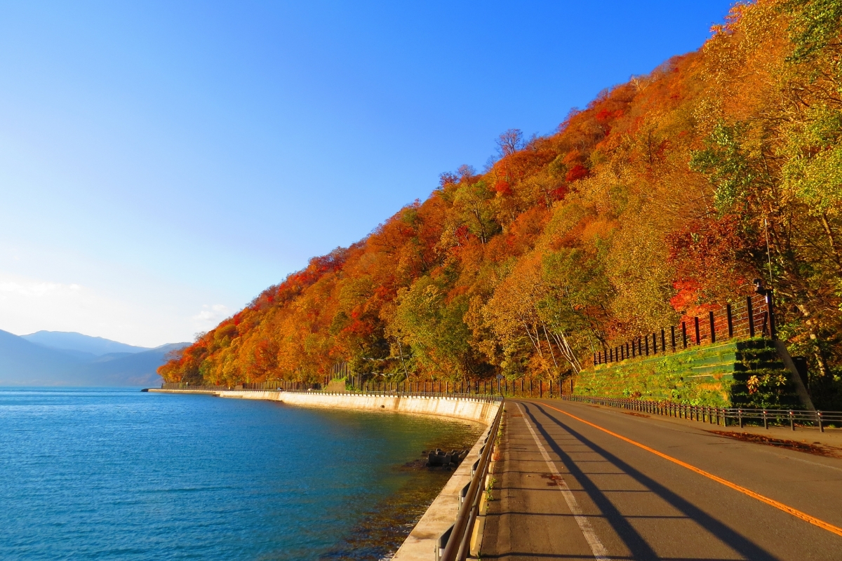 - 支笏湖ブルー × 紅葉の鮮烈なコントラスト
