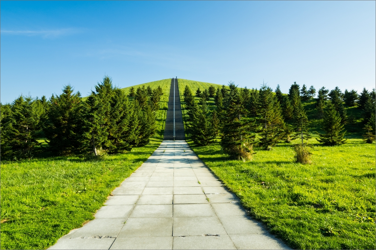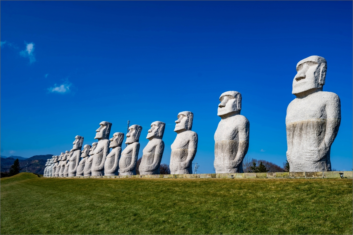 真駒内滝野霊園のシンボル「頭大仏」や、「証を後世へ永遠に伝承できるように」という願いの込められた「モアイ像」は圧巻の光景です。アート施設ではありませんが、建築と自然が溶け合う神秘的な空間は、訪れる人の心をそっと落ち着かせてくれるはず。季節ごとに異なる表情を見せる風景も大きな魅力です。