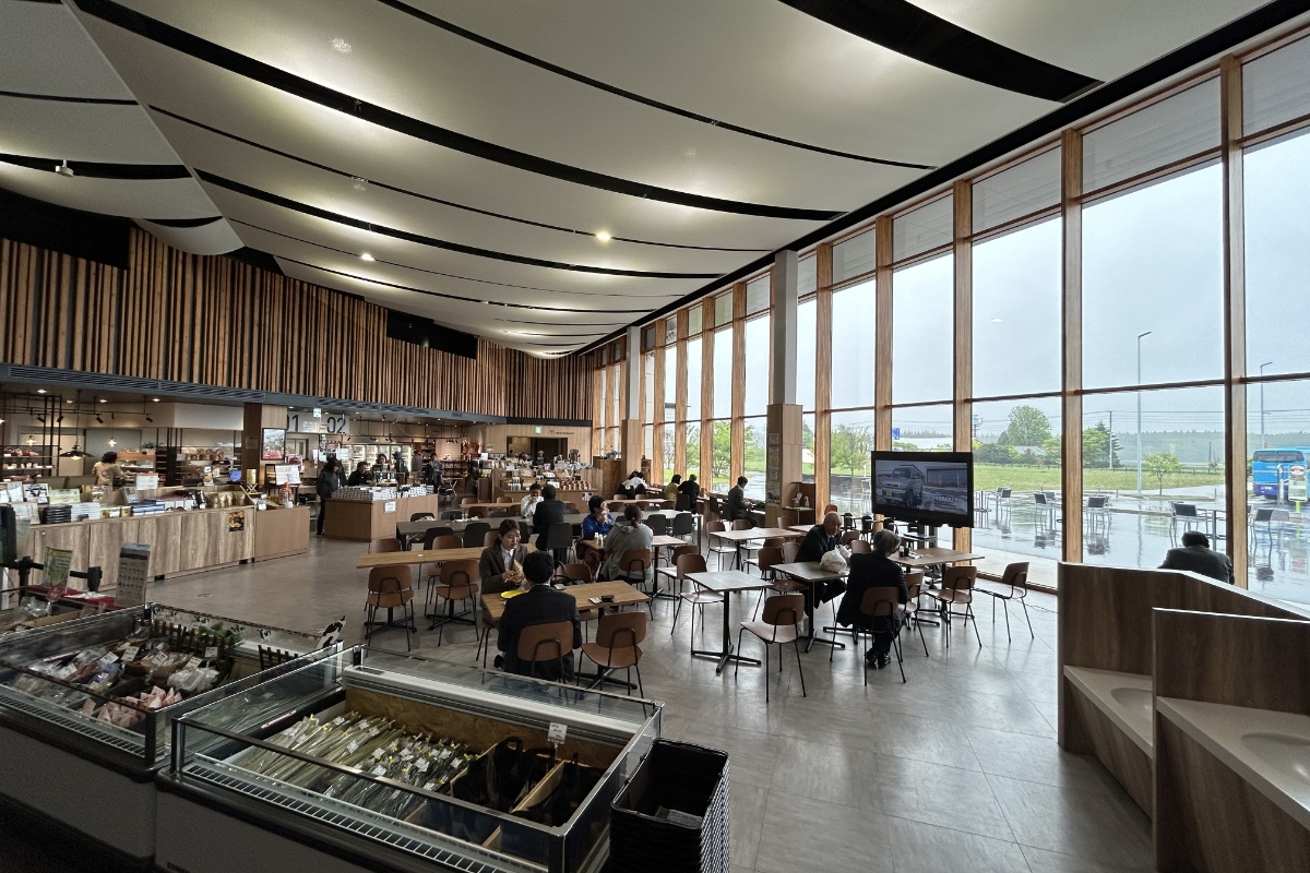 「道の駅かみしほろ」は2020年オープンの新しい道の駅で、木の温もりと大きなガラス窓が開放的な館内が特徴。レストランやベーカリー、スイーツ、テイクアウトの各ショップが入り、“旅の目的地になる道の駅”として整備されています。