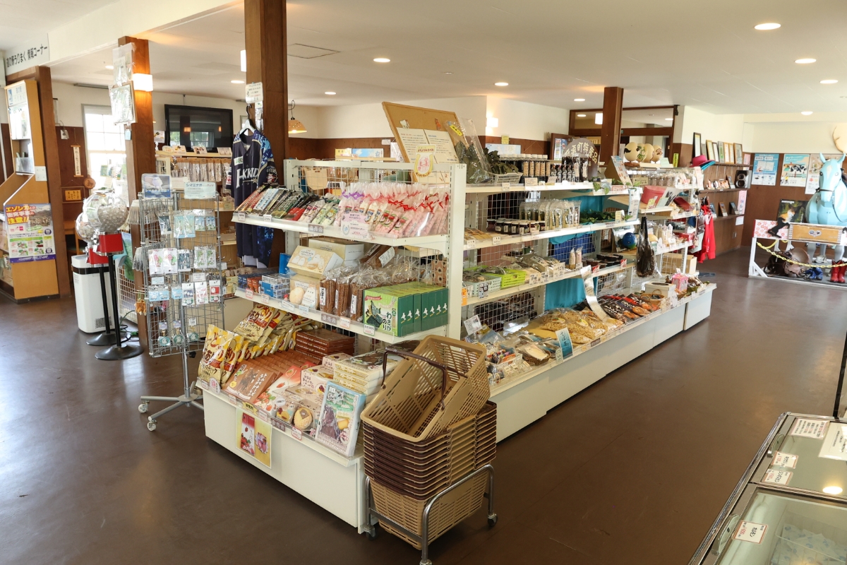 お土産売り場には、北海道遺産「ラワンブキ」の加工品をはじめ、地元産チーズや焼きたてパンなど地域色豊かな商品が並んでいます。