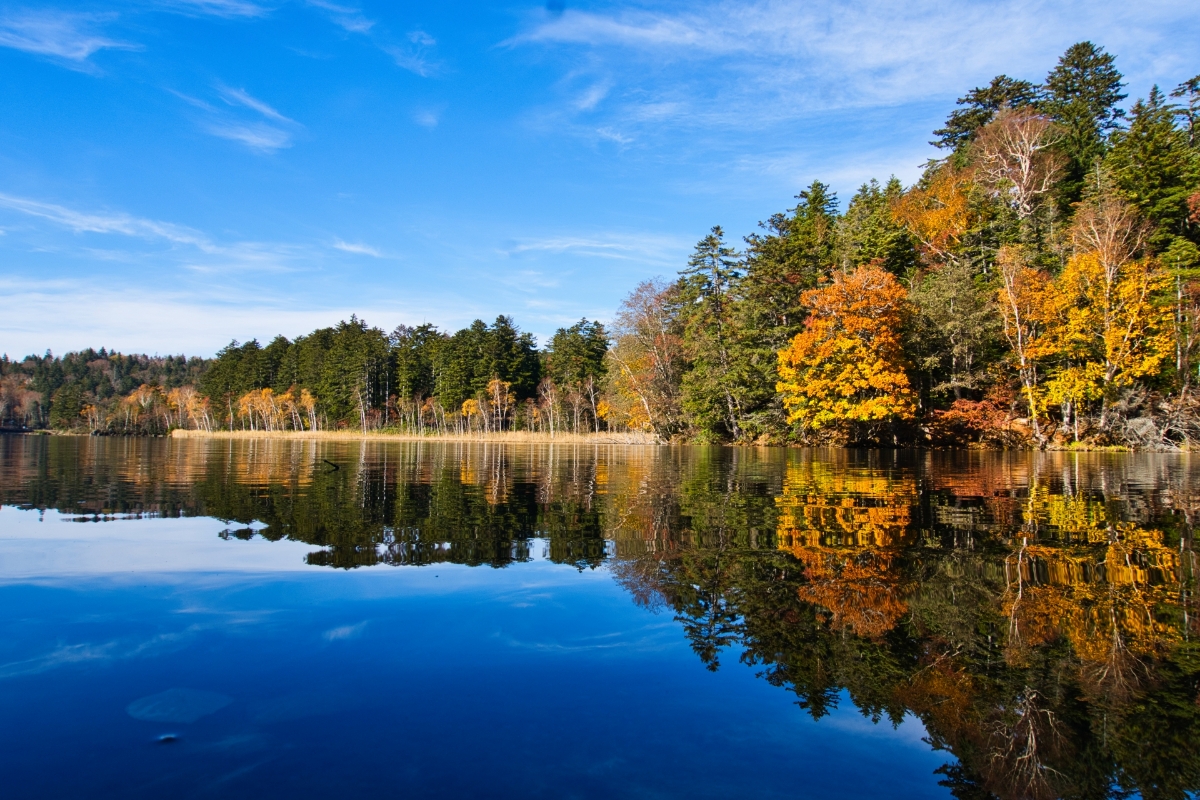 雌阿寒岳の麓にある神秘的な湖で、見る角度や時間によって色が変化することから「五色沼」とも呼ばれます 。鏡のように反射する湖面と背後の山々のバランスが完璧で、北海道らしい力強くも繊細な風景写真が撮影できます 。