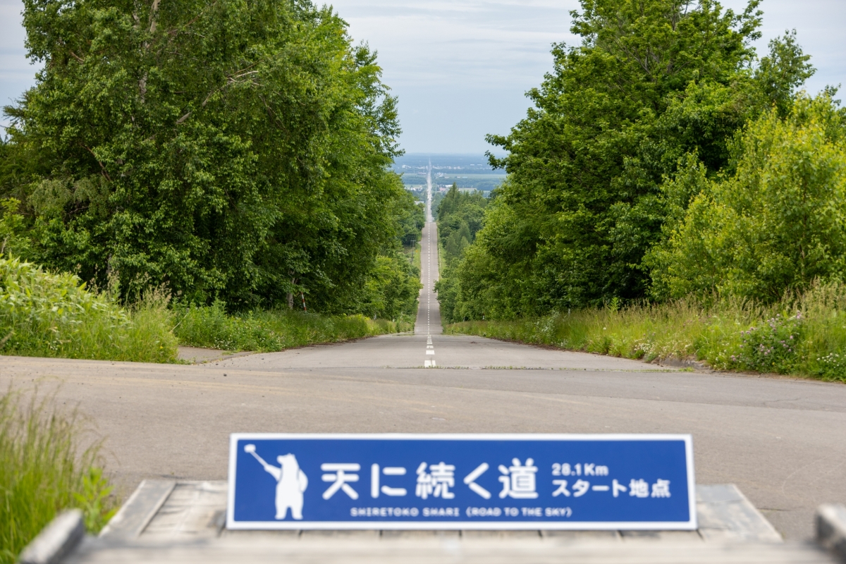 約28kmも続く直線道路が、まるで空へと昇っていくように見えることから名付けられました。知床観光の際には絶対に立ち寄りたいスポットです。特に、道の延長線上に太陽が沈んでいく秋分の日・春分の日前後は、夕陽が道を照らすドラマチックな光景が見られます。